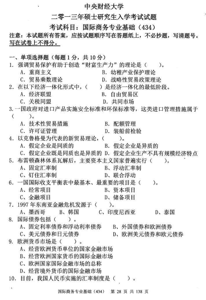• 中央财经大学2014国际商务专业基础(434)考研真题带答案