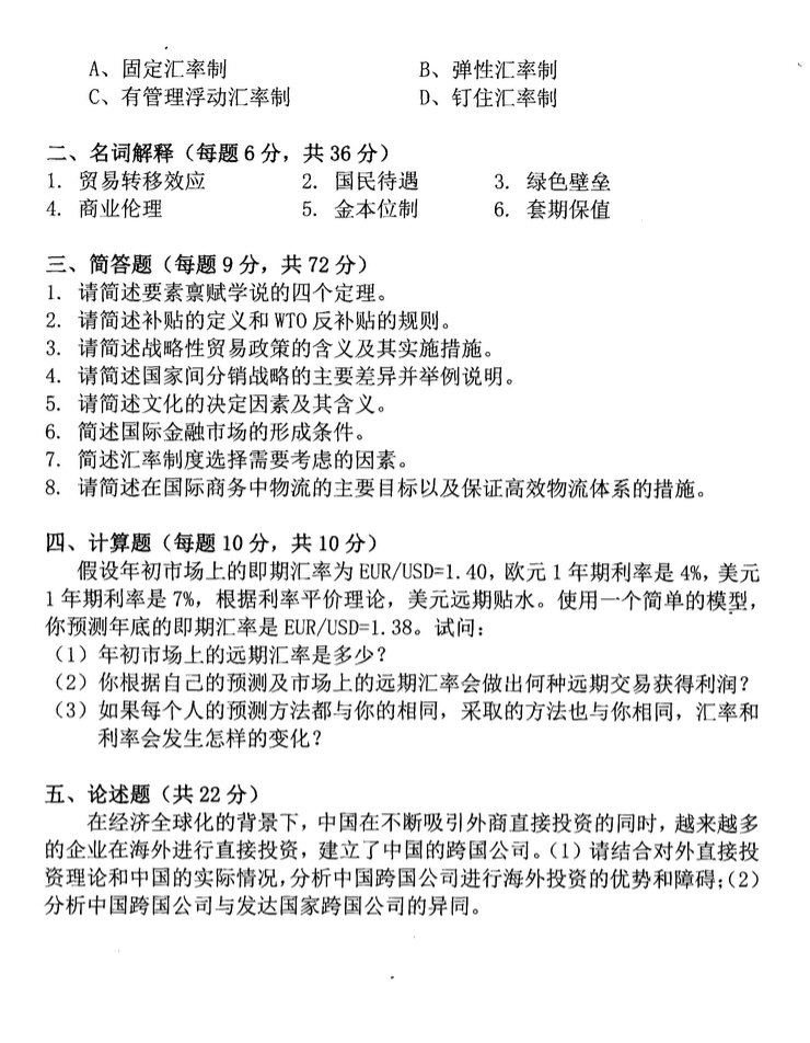专业课考研资料 本站小编 免费考研网 2018-01-14一、名词解释 产品内分工 有效保护率 欧洲债券 米德冲突 (WTO)非歧视原则 名义有效汇率 二、简答