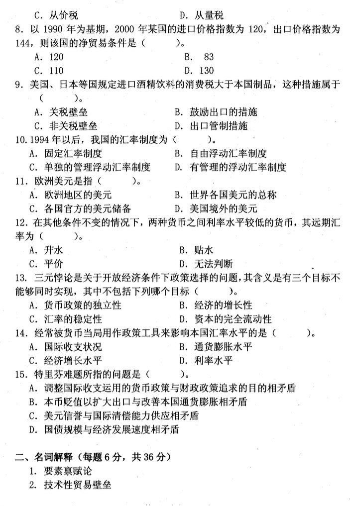专业课考研资料 本站小编 免费考研网 2018-01-14一、名词解释 产品内分工 有效保护率 欧洲债券 米德冲突 (WTO)非歧视原则 名义有效汇率 二、简答