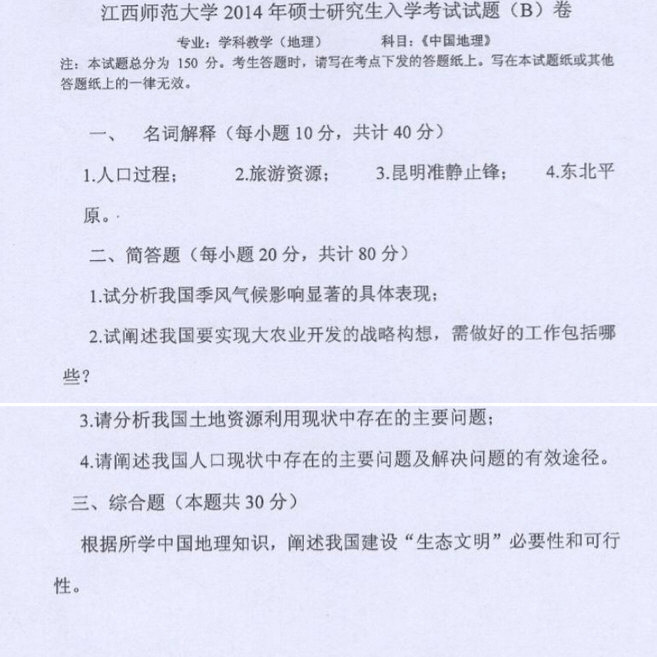 辅导考试考研资料 本站小编 福瑞考研网 2017-02-05华中师范大学中国地理真题