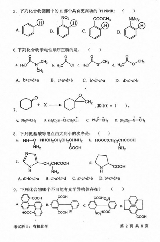 2010-2011年中国科学技术大学有机化学考研真题(10)