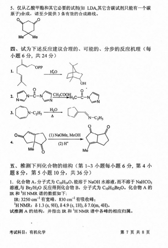 2010-2011年中国科学技术大学有机化学考研真题(15)