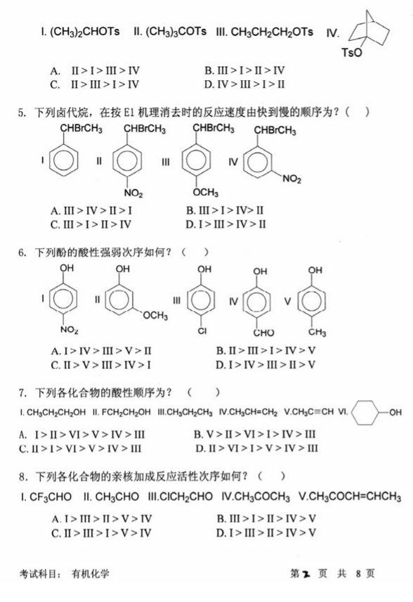 2010-2011年中国科学技术大学有机化学考研真题(2)