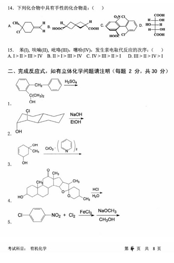 2010-2011年中国科学技术大学有机化学考研真题(4)