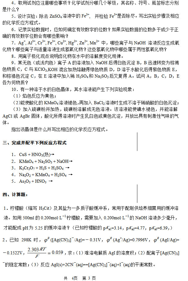 郑州大学2009无机化学考研复试试题(3)
