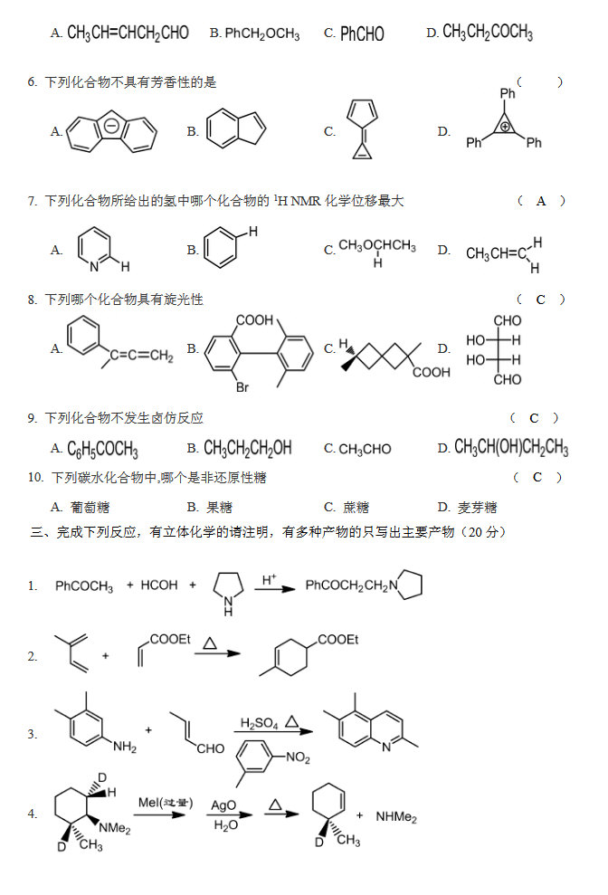 东北师范大学2016有机化学考研试题及参考答案(2)