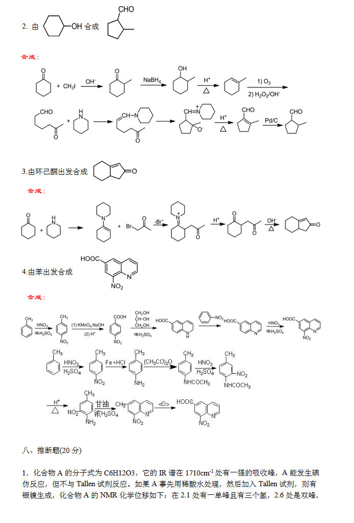 专业课考研经验 本站小编 FreeKaoyan 2018-01-23一.选择题(20题)(1)林德拉试剂的组成(2)物质R,S构型判断(3)SN1,SN2反应的区分与速率比较(4)2009年诺贝尔化学奖研究方向(5)几种物质IR波数大小比较(炔,烯等)(6)几种不同结构的酮的反应活性(7)区分一对旋光异构体(名字忘记了)所用到四大谱中哪一个较合适(8)几种环酮,共轭 ...