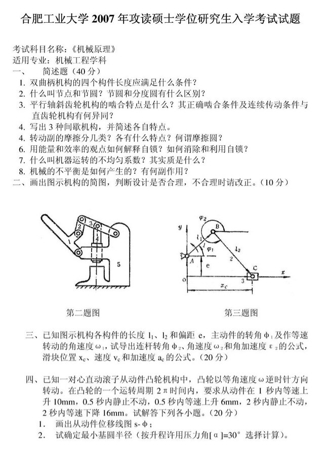天津工业大学2007年考研专业课试卷机械原理与机械设计上传的附件b5029e40419afadb97017247fd793598.rar(950.35KB) ...