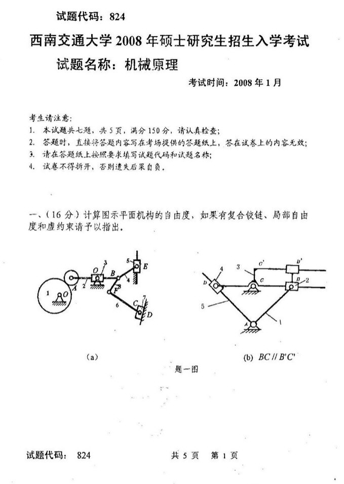 山东科技大学2007年考研专业课试卷423机械原理上传的附件16182101b39656d7bd9be384c6f7fdb1.rar(230.91KB) ...