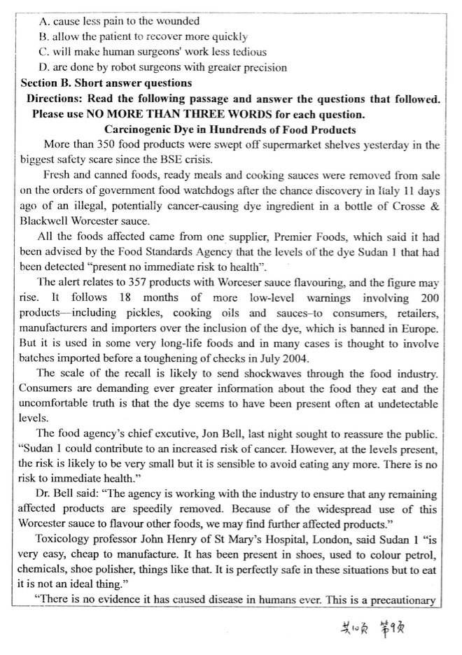 第二题是改错题,2000年专八试题原题。