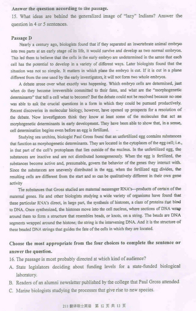 厦门大学2010翻译硕士英语考研真题(12)