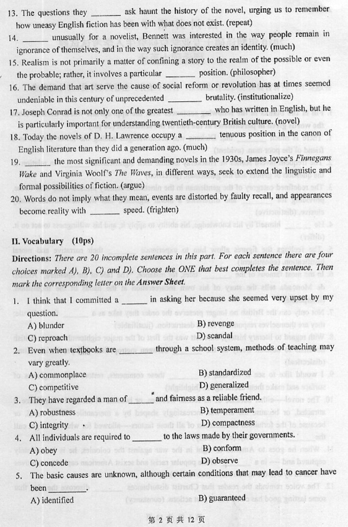 专业课考研资料 本站小编 免费考研网 2018-02-20南京大学2012翻译硕士英语考研真题