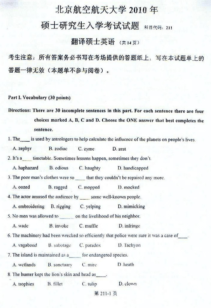 北京航空航天大学2010年翻译硕士英语考研试卷
