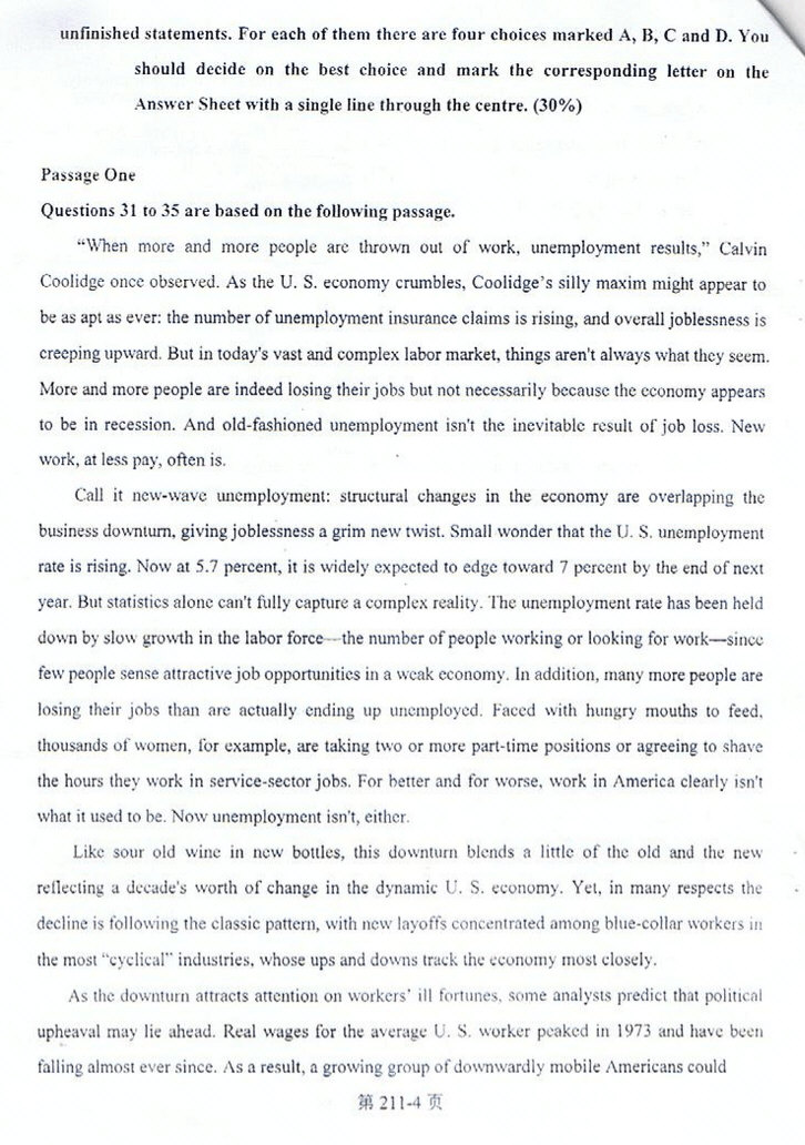 专业课考研资料 本站小编 免费考研网 2018-01-232011年天津外国语大学211翻译硕士英语考研真题与答案