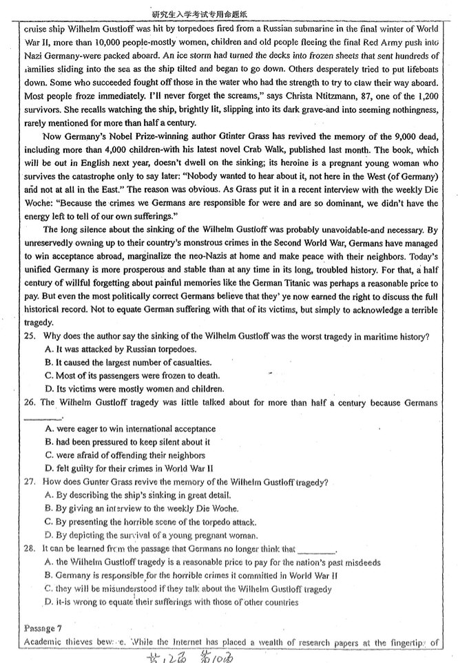 专业课考研资料 本站小编 免费考研网 2018-02-20武汉大学2010翻译硕士英语考研真题
