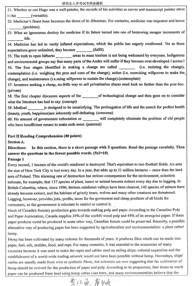 专业课考研资料 本站小编 免费考研网 2018-02-20南京大学2012翻译硕士英语考研真题