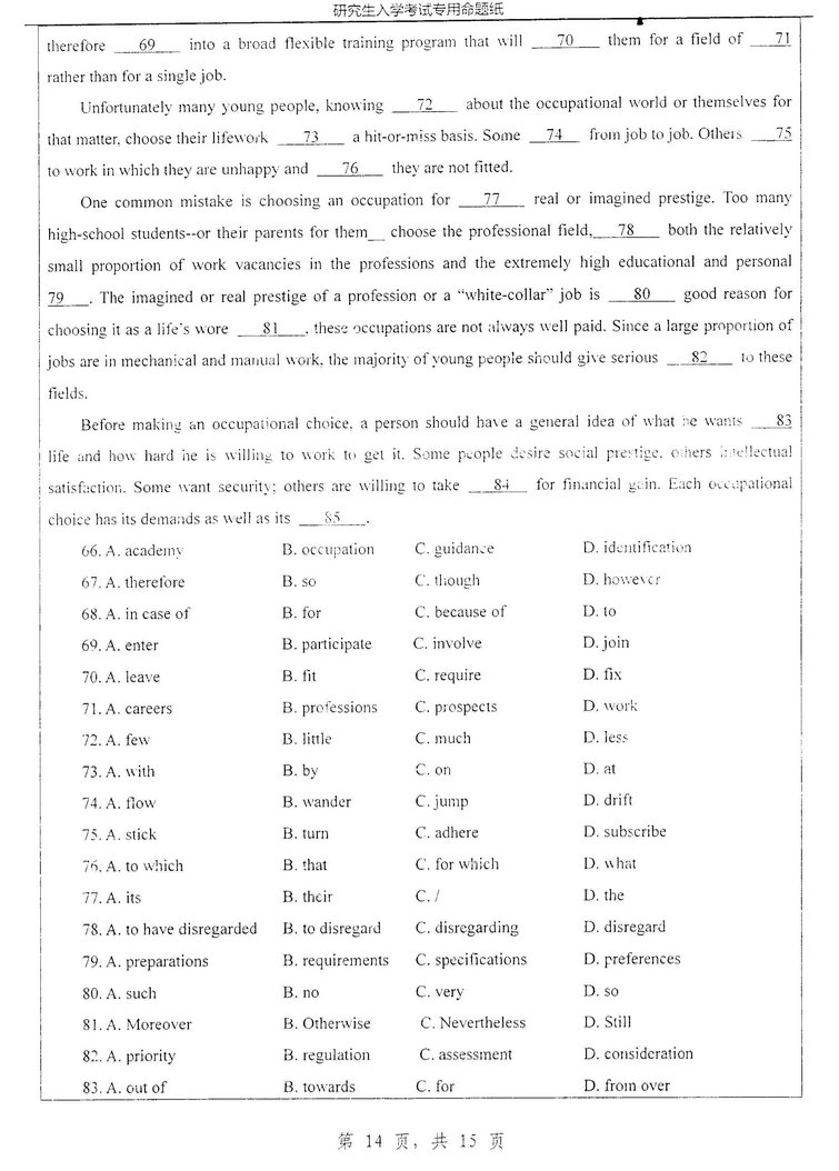 专业课考研资料 本站小编 免费考研网 2018-02-20北京航空航天大学2010年翻译硕士英语考研试卷