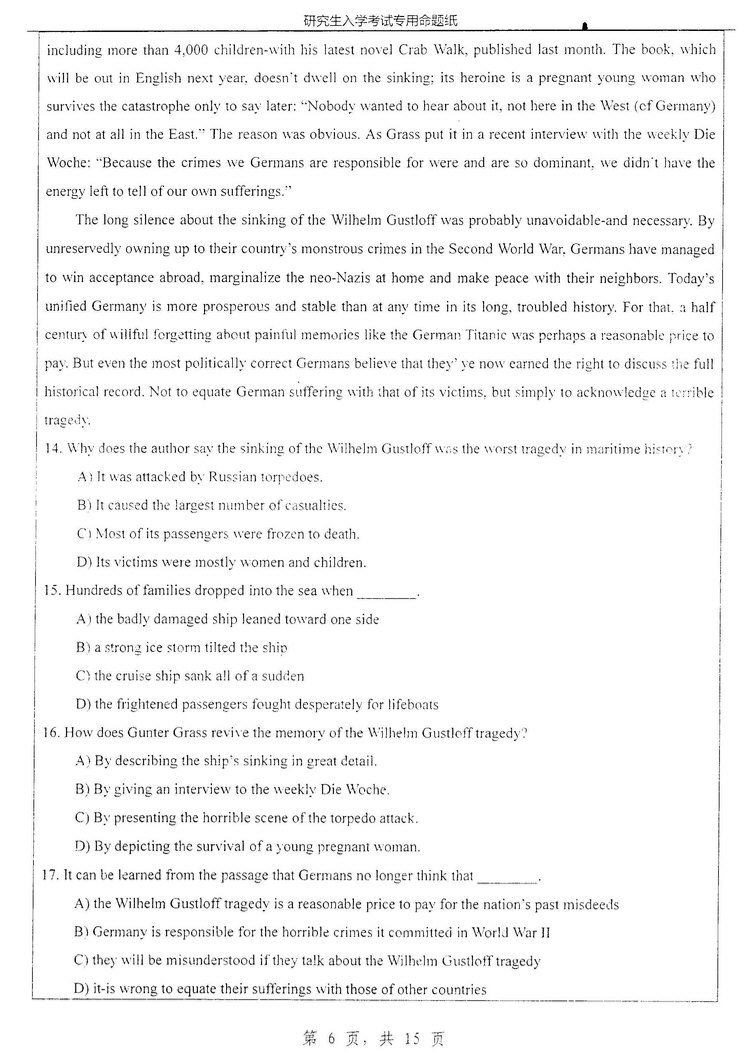 专业课考研资料 本站小编 免费考研网 2018-02-20首都师范大学2010翻译硕士英语考研真题