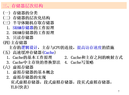 重点是蓝字部分,Cache这重中之重,虚拟存储这主要是操作系统那考,计组这边主要考TLB。多体存储器这里他也单独讲了下。