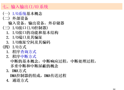 I/O方式是重点,其中中断方式又是重点。他还比较了一下无条件转移、程序查询、程序中断、DMA方式的速度。压根没提到通道。