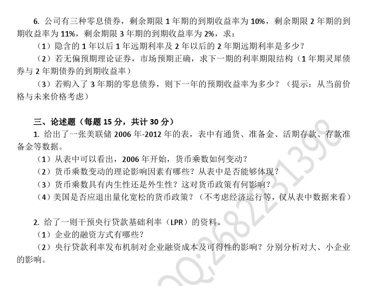 专业:金融学 科目:货币银行 一、名词解释 基准利率 居民储蓄分流 直接信用控制 金融相关率 资本外逃 二、简述 1,费雪方程式与剑桥方程式的主要差异何在? 2,简述金融监管的基本原则 3,简述通货膨胀目标制 4,简述资本管制、货币政策有效性和汇率制度选择三者之间的关系 三、论述 1,结合现代货币创 ...