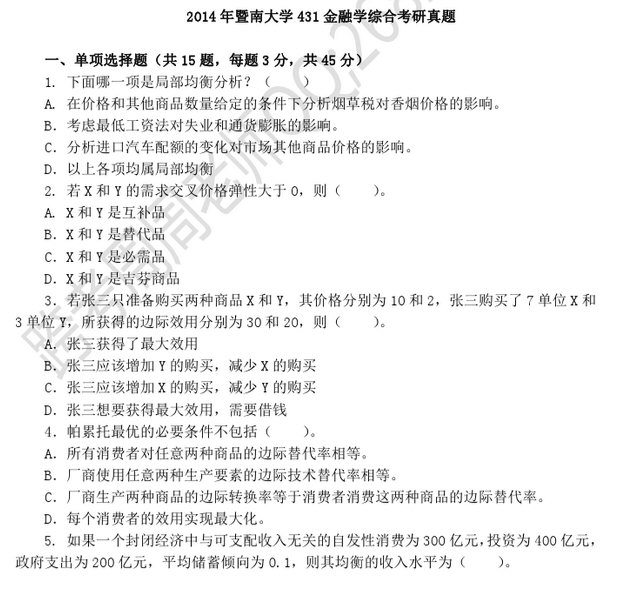 • 2015年复旦大学431金融学综合考研真题及答案解析