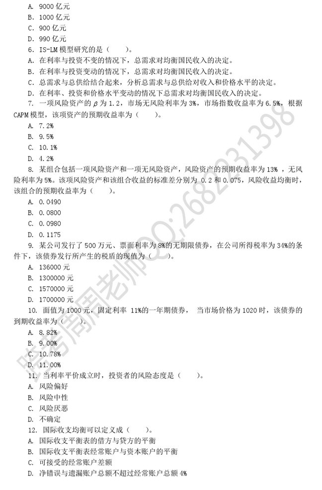 • 2014年上海财经大学431金融学综合考研真题