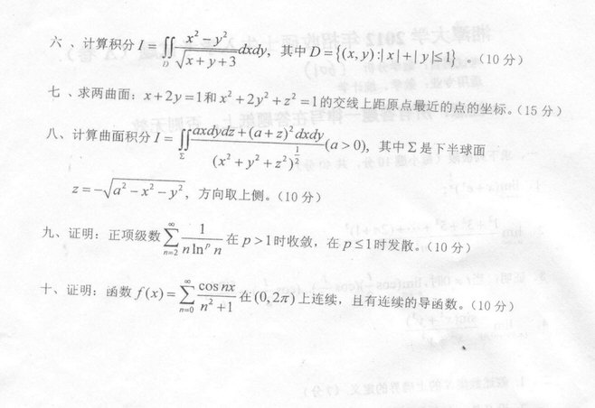 2012年湘潭大学数学分析考研真题(2)