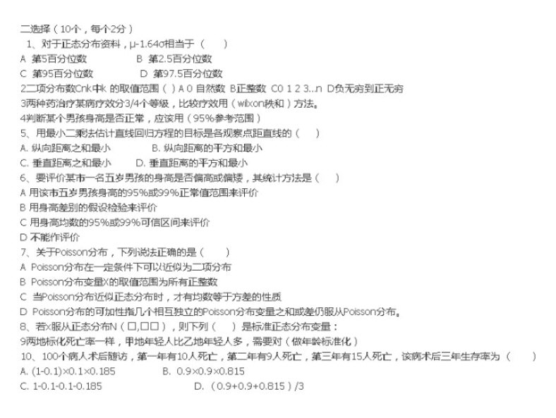专业课考研经验 本站小编 FreeKaoyan 2018-01-23广州医学院2002年硕士研究生入学考试题《卫生综合》试卷(B)一、名词解释: (本大题分10小题, 每小题2分, 共20分)1. 临床预防2. 临终关怀3. 光化学烟雾4. 工作有关疾病5.矽肺6.特殊人群7.队列研究8.公害9.合理营养10.总体二、简答题:(本大题分6小题, 每小题5分, 共30 ...