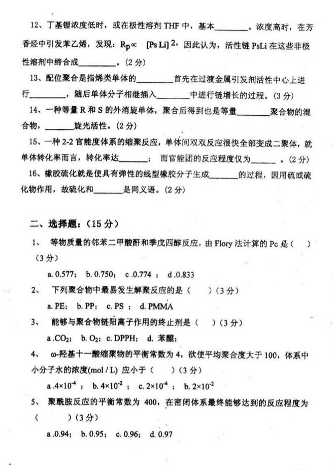 武汉理工大学2010,2006高分子化学考研真题(2)