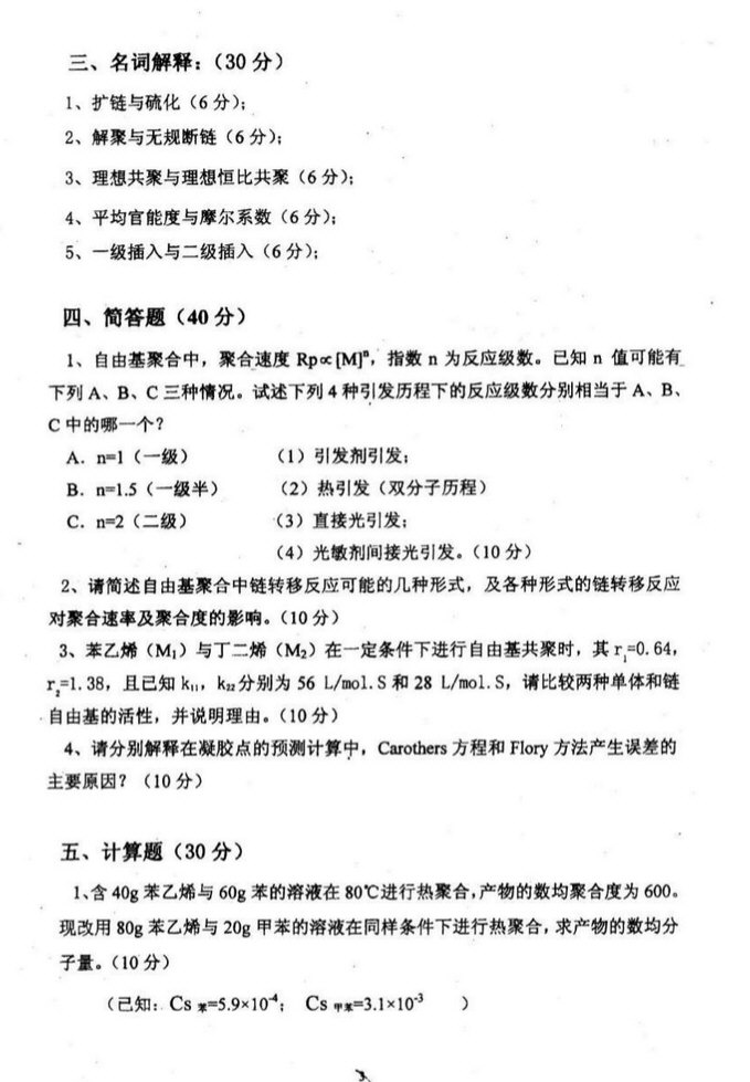 武汉理工大学2010,2006高分子化学考研真题(3)