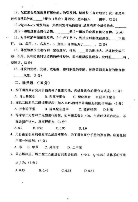 武汉理工大学2010,2006高分子化学考研真题(6)