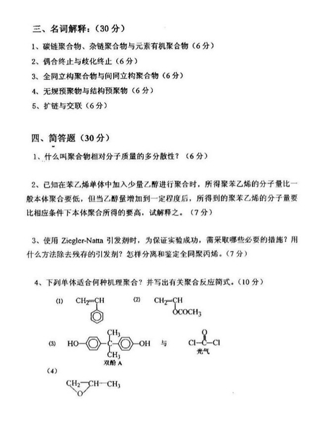 武汉理工大学2010,2006高分子化学考研真题(7)