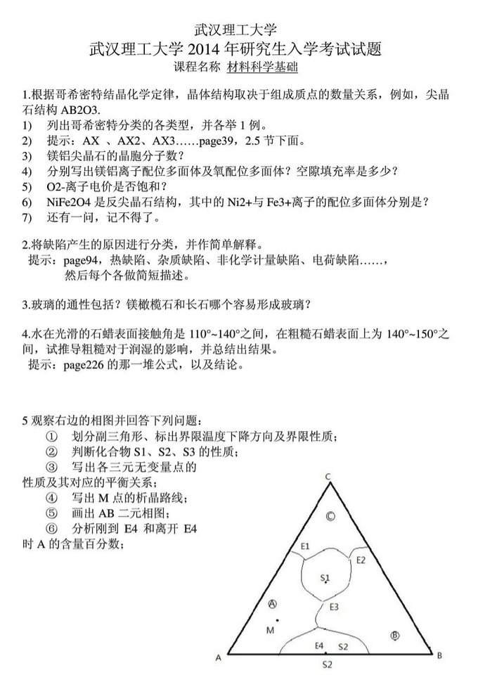 这么快试就考完了,跟做梦似的,结果很不好,过的可能是不大了,今晚一晚都没睡,睡不着,脑子现在都昏的不行了,虽然我成功的几率几乎为零,还是希望能给自己的考研之路留下点结果,将我记忆的材料基础真题写到这,希望对大家有些帮助。交大材料的历年考题都很简单,也很基础,今年也一样,可也说非常简单,仍是25道选择 ...