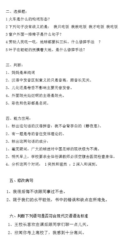 一、真题分值题型分析2016年专业一:九个大题。汉语基础知识:填空10小题共20分,选择10小题共20分,名词解释4小题共20分,简答4小题共40分。汉语应用分析:语音偏误分析1小题共10分,词语辨析(结合偏误)1小题共10分,句式分析1小题共10分,义项分析1小题共10分,文言文翻译一段,共10分 ...