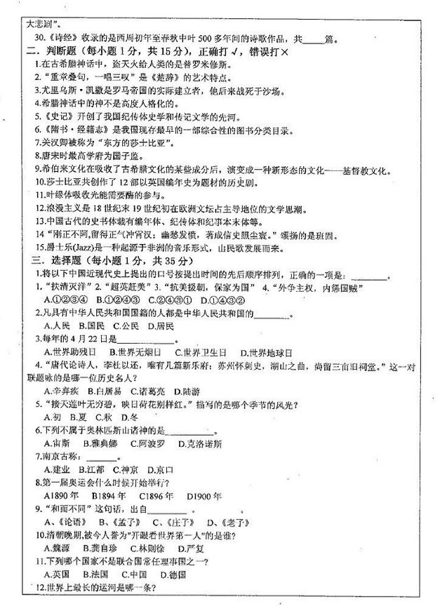 专业课考研资料 本站小编 免费考研网 2018-01-03一、分值题型分析2016年题型专业一:填空题(20分),判断题(17分),选择题(22分),拼写拼音(10分),名词解释(3个,共9分),辨析近义词(3组,共12分),改错别字(10分),划分句子成分(15分),修改病句(20分),古文阅读(15分)专业二:填空题(30分),判断题(15分),选择题 ...