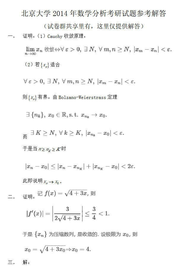 1, f(x)无穷区间上一致连续,0专业课考研经验 本站小编 FreeKaoyan 2018-01-23北京大学2007年考研真题-数学分析