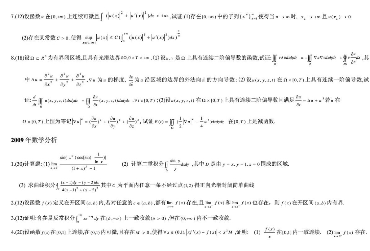 专业课考研经验 本站小编 FreeKaoyan 2018-01-23中国科学技术大学2010年623数学分析考研试题(回忆版)