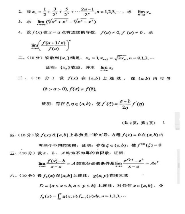 专业课考研经验 本站小编 FreeKaoyan 2018-01-23中国科学技术大学2010年623数学分析考研试题(回忆版)