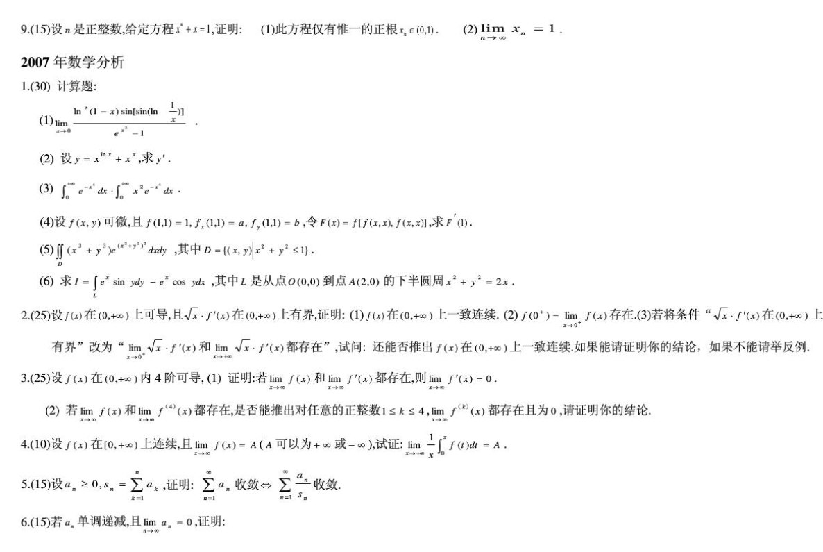 专业课考研经验 本站小编 FreeKaoyan 2018-01-23天津工业大学2007年考研真题-数学分析
