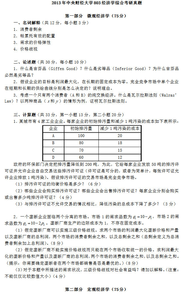 专业课考研资料 本站小编 免费考研网 2018-03-122013年浙江大学801经济学综合(含西方经济学、国际经济学)考研真题一、西方经济学部分(100分)