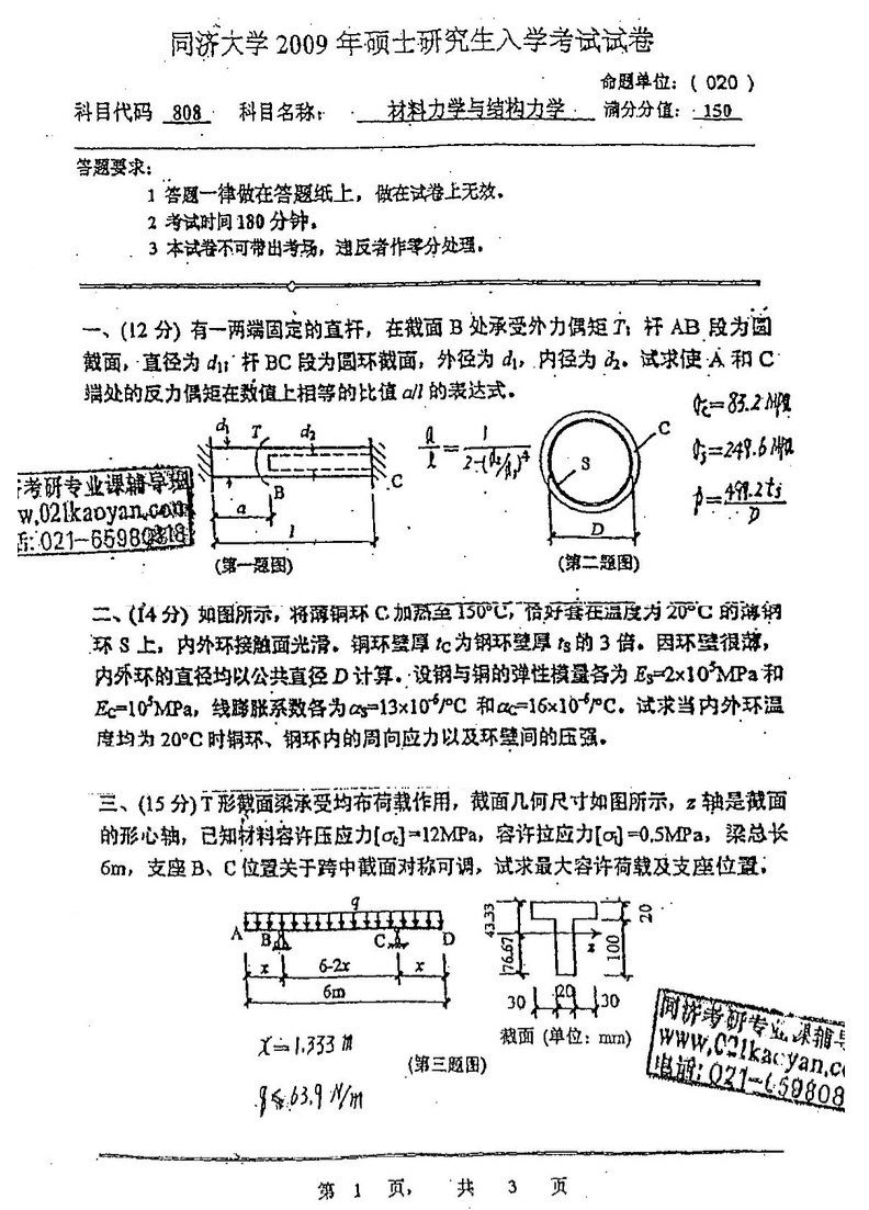 专业课考研经验 本站小编 FreeKaoyan 2018-01-23长安大学2005年考研专业课试卷材料力学上传的附件0efe37336e38a9db060848b1a4ad3a45.rar(104.30KB) ...