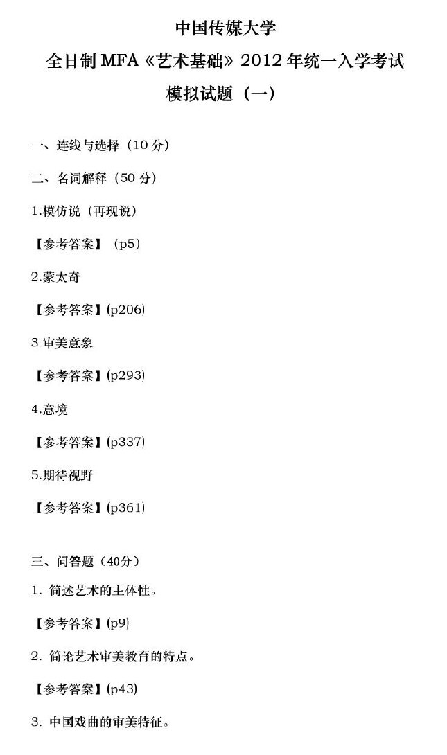 • 中国传媒大学全日制MFA《艺术基础》2012年考前冲刺必会30题