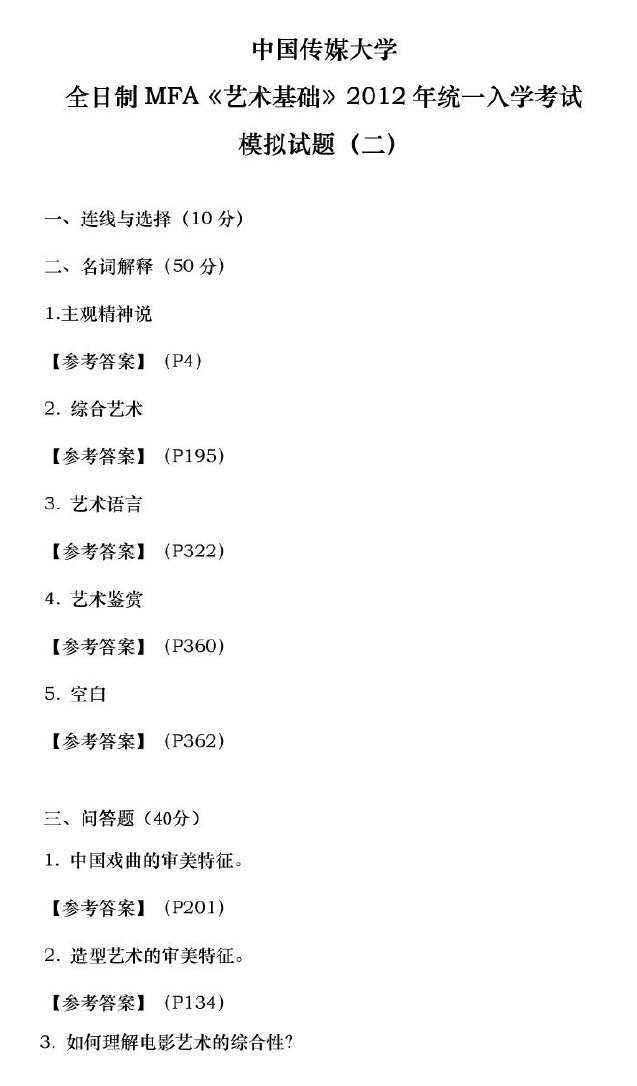 • 中国传媒大学全日制MFA《艺术基础》2012年考前冲刺必会30题
