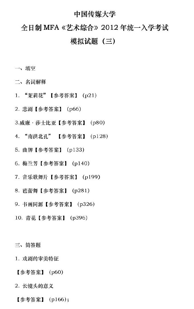 中国传媒大学全日制MFA《艺术综合》2012年统一入学考试模拟题(三套卷)(5)