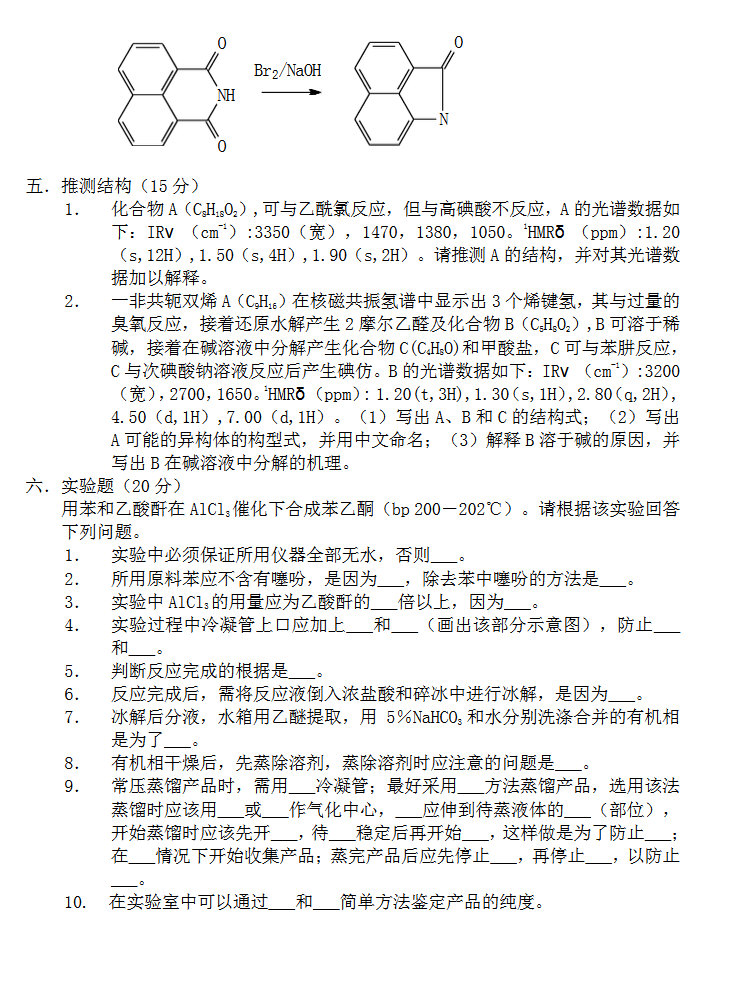 1比较吡啶,苯胺,二甲胺,吡咯的碱性,解释为什么? 2.解释立体选择性反应,立体专一性反应和不对称合成的概念;怎样衡量不对称合成的效率;用HCl处理100%光学活性的S-2-甲基-1-丁醇得到100%光学活性的1-氯-2-甲基丁烷,为什么?3机理
