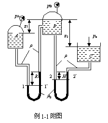解 如图所示,选取面1-1¢、2-2¢,显然面1-1¢、2-2¢均为等压面,即