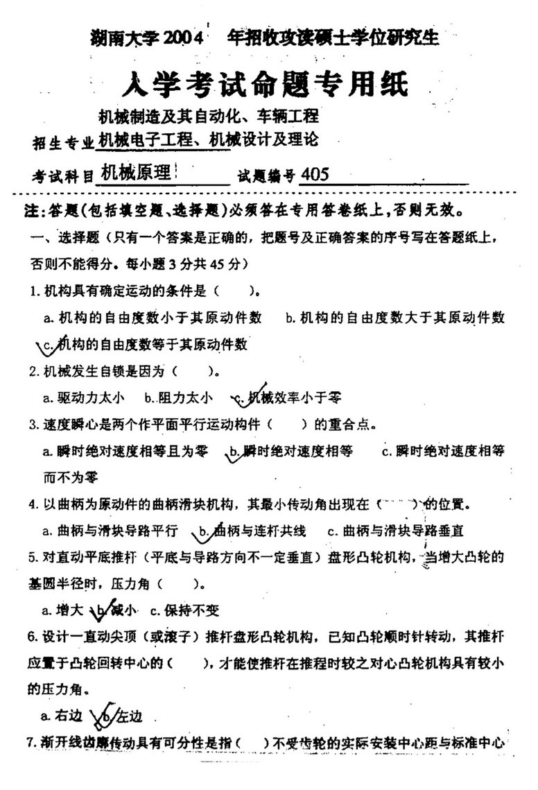 2008,2007,2005,2004年湖南大学机械原理考研真题原版(13)