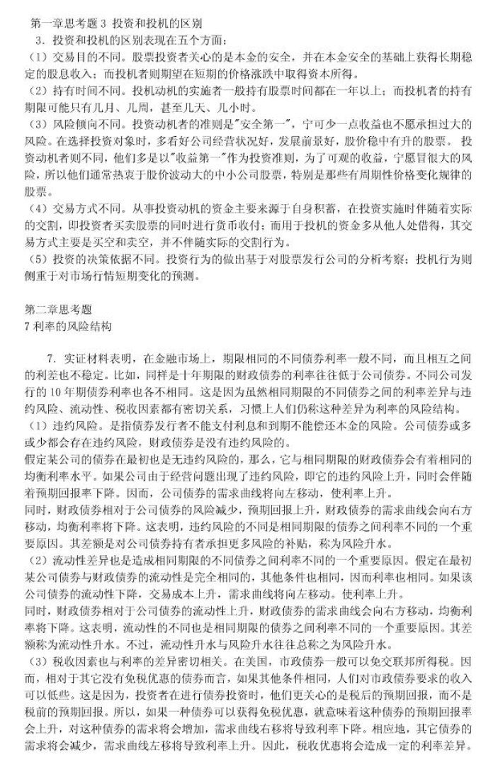 天津财经大学考研:投资学主观题+银行管理主观题+复试真题