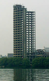 [注释] 上图 1 为一栋高层建筑,如果我们除去它的装饰、围护墙、门窗、防水隔热设施、水电设施等部分,就剩下一个如图 1b 所示的钢筋混泥土的骨架。就是这个骨架,承受着包括自重、雨雪、风、地震以及建筑物内所有人员、设备造成的荷载,而对整个建筑物起到支撑作用。这个骨架就是我们所说的结构。
